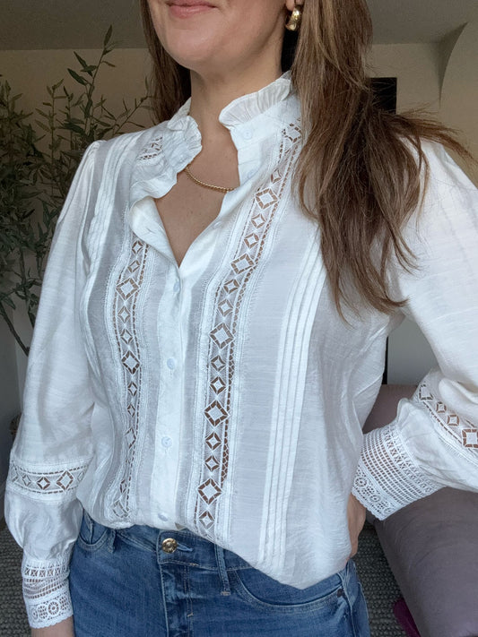 White Marketa Embroidery Detailed Blouse