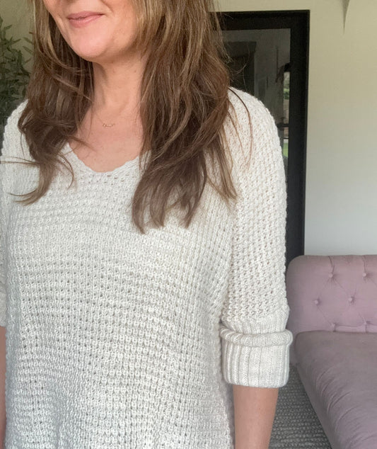 Sold outWaffle Knit Cream V Neck Jumper
